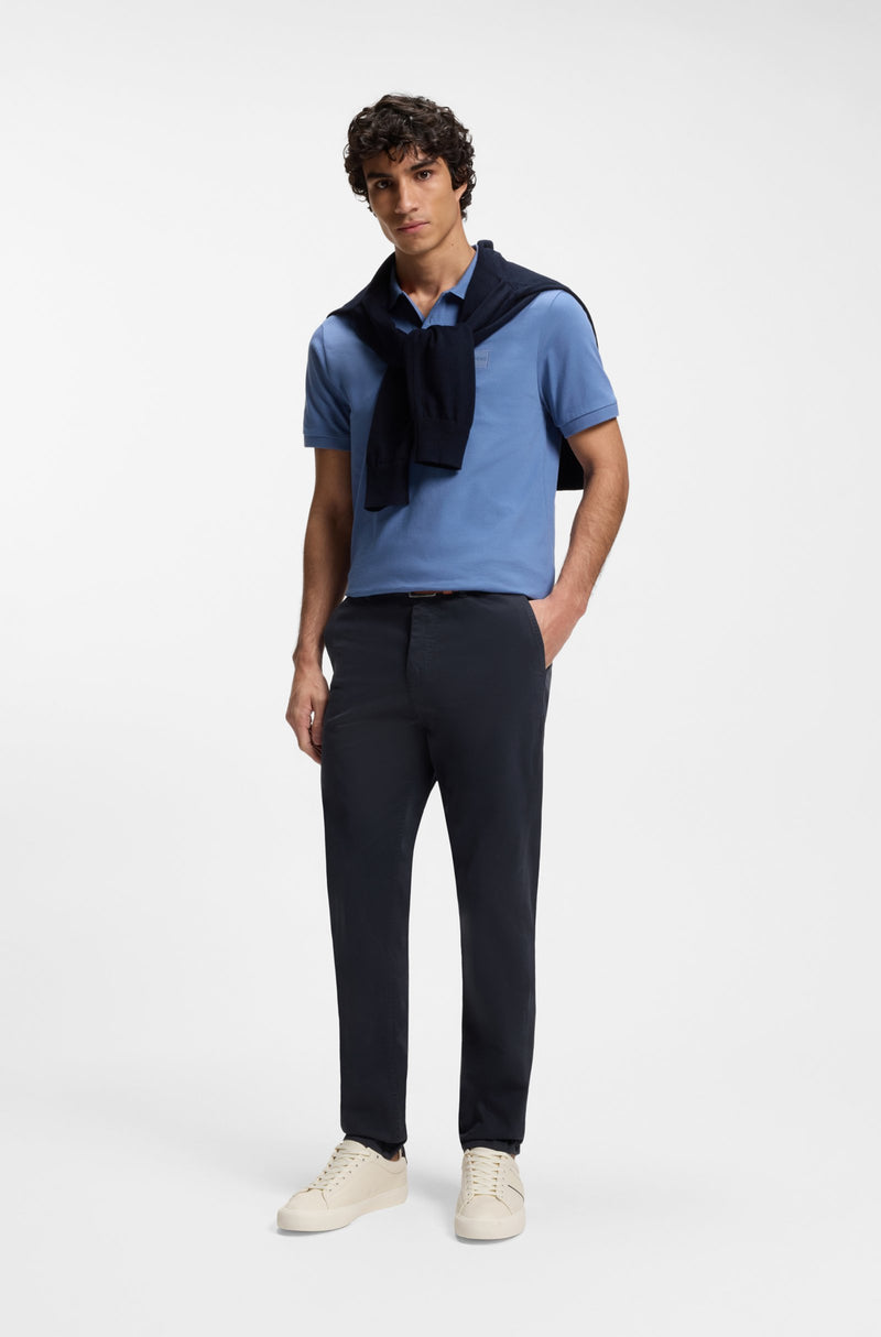 Chinos de ajuste afunilado em cetim de algodão elástico
