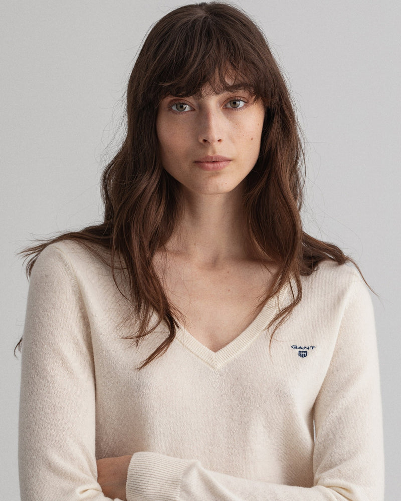 Pulover com decote em V em lã extrafina - GANT