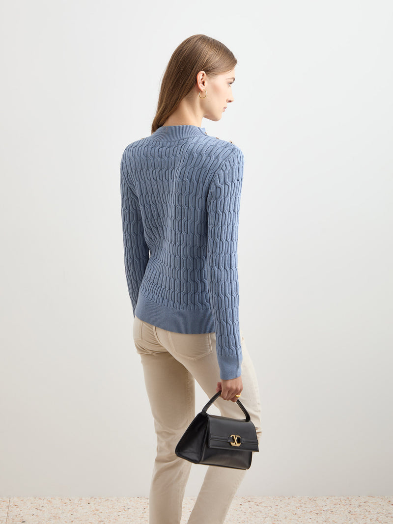 Camisola malha entrançada com botões - DECENIO